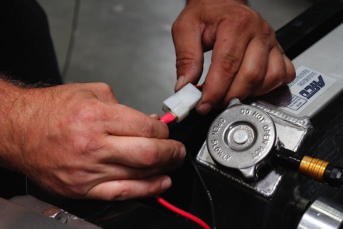 The fans cannot be controlled independently of each other with just the one PWM, but using either the temperature probe or the thermal temperature sender will help to maintain the desired temperature. We installed the thermal temperature sender on the radiator for an accurate reading of coolant temperature, and we’ll let the PWM controller do the rest.