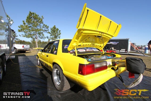 Interestingly, the nature of the track surface will occasionally call for extra ballast to make for a smoother and quicker ride. Fiscus’ Mustang weighs in at the minimum without any ballast, but as Fiscus explains, “If the track surface is bumpy, we’ll add weight to the back half of the car to keep it planted over rough surfaces.”
