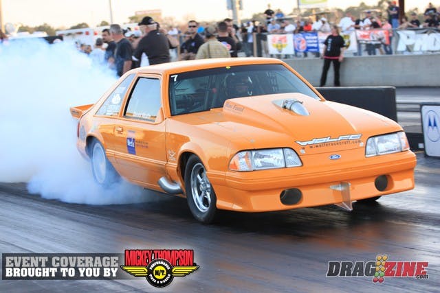 Also setting records on 275’s, there’s perhaps no radial-clad machine out there that does it with more finesse on a more consistent basis than Sean Lyon’s turbocharged ’93 Mustang. Lyon currently holds the NMRA record at a killer 7.53 seconds and if you want to beat him, you’ll have to flat outrun him, because the Panhandle Performance ride doesn’t struggle with traction very often.