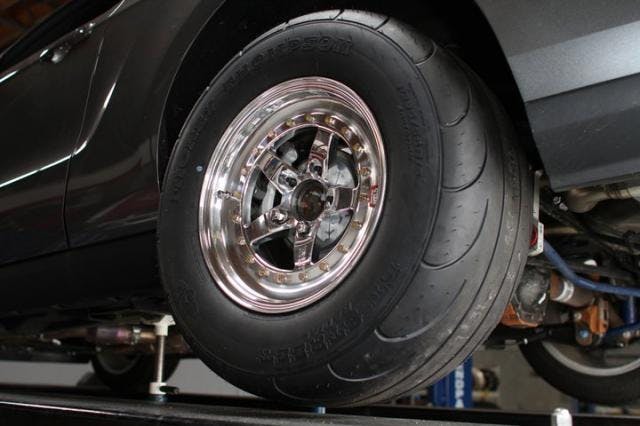 “A wide wheel is the way to go,” explains M/T’s Robinson. “The wider the better, actually. Drag Radials like to be what we call ‘held out’ or ‘held wide,’ I don’t know if there’s such a thing as overdoing it, but we have seen 315’s on 14-inch wide wheels, so it can be done. Does it make a difference between 12 and 14? That’s hard to determine right now, but they definitely like to be held out wide, due to the construction of the radial tire. The belts go across the tread rather than diagonally. It’s really the shape and the construction of the tire that dictates the wider wheel.”