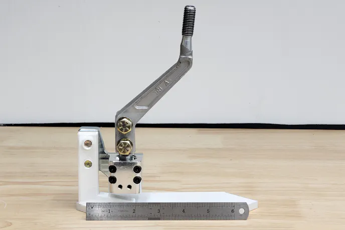 In addition to moving the shift handle mounting point back and up, the AxiShift allows for 15 degrees of rock (from vertical) forward, back, and side to side. In addition to that, it allows 360-degrees of yaw adjustment, allowing for a huge amount of customization. In our case, by laying the shifter handler directly back 15 degrees, we were able to net an additional two inches of shift handle reach, for a total of 3.5 inches of additional reach over the stock shift handle mounting.