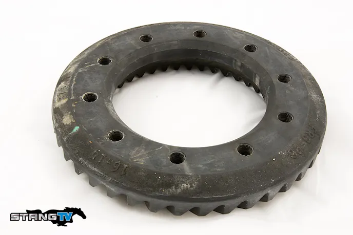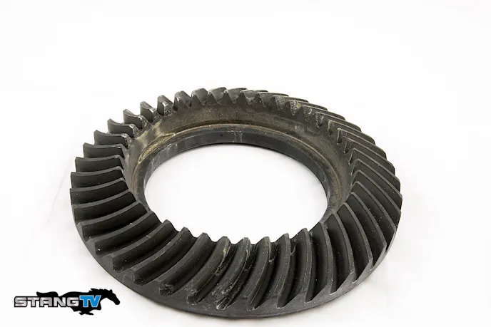 The ring gears are also different as well. The 8.8-inch rearend gets its name from the ring gear diameter. While the outside diameters are the same, and the gear tooth pattern appears nearly identical there is at least one other difference. We could not get a precise measurement on the height differences (not for a lack of trying), however its enough to be visibly noticeable.. Notice also that the shape of the backside of the ring gear for the IRS 8.8 appears to have a smaller beveled section than the SRA ring gear. We did not have any ring gear bolts to check to see if they were different as well.