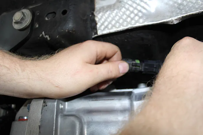 After you’ve buttoned up the transmission and the driveshaft enough to get them in place, you’ll need to modify a few of the existing sensors and install the new reverse-lockout module. SST does include new sensor connectors in case you need them, as the ’05-’14 Mustang models vary in terms of sensor styles.