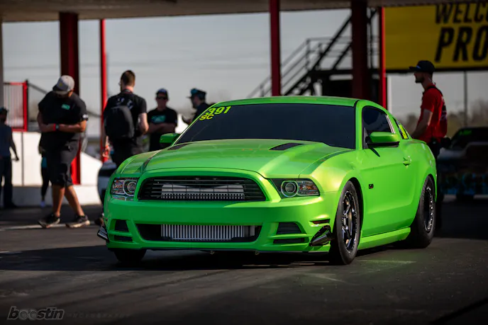 For reference, the car features a stock-displacement, Fast Forward Race Engines-built Coyote featuring Manley Performance internals, GT350 cylinder heads, custom cams, Plazmaman billet intake manifold, Plazmaman air-to-air intercooler, and twin 7675 Precision turbos in a custom turbo kit. It’s tuned by Jay Meagher at Real Street Performance (Brett’s place of employment) and runs on One Ethanol fuel.