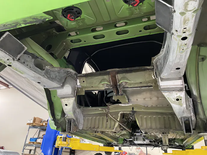 By creating the clearance in the rails seen above, Lamana positioned the shocks where he wanted them and used the coilover configuration.
