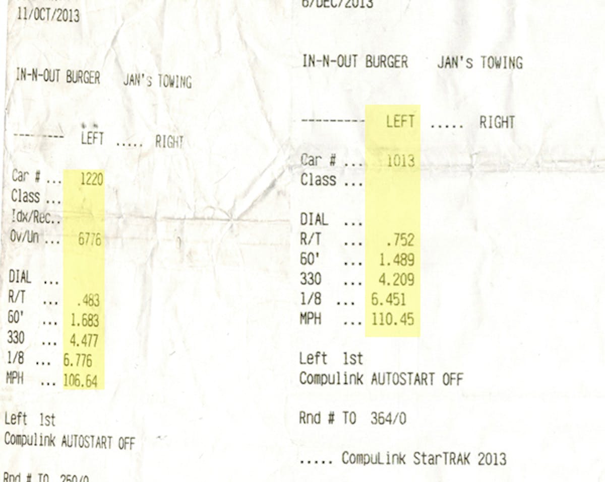 We’re satisfied with the gains we’ve seen, and expect to drop the elapsed times a bit further with more seat time in the car, as the car owner is still getting used to the way the car performs with these new pieces. We’re also going to try playing around with some of the adjustments to see if we can improve our performance.