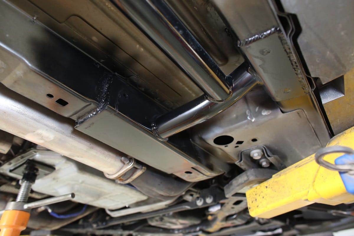 Installation is simple – there are four new bolts provided that replace the factory transmission mount bolts, you then bolt together the halves of the loop, and that’s it – simple and effective. However we were not able to install this on our automatic 2013 (nor 2011-12) as the transmission offset is different from the previous generation S197s.