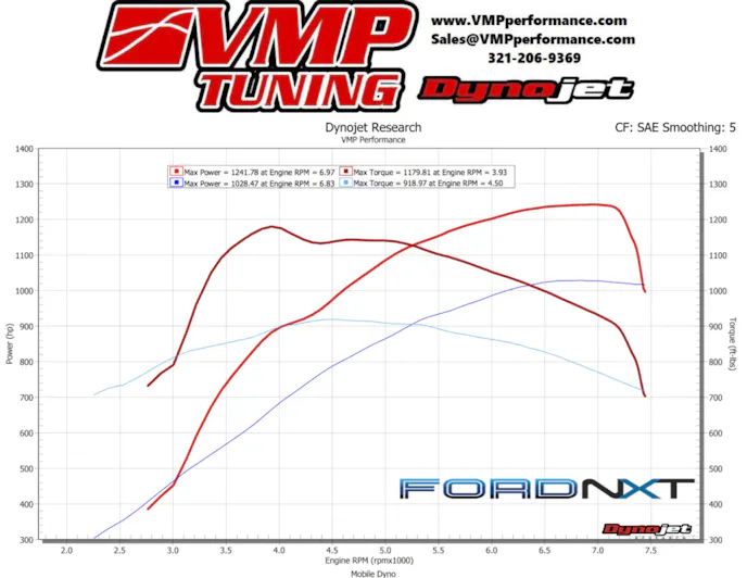 Ultimately the blower performed much like it did on the Coyote engine, but it makes more torque due to the increased displacement and it doesn’t carry the power out quite as far.