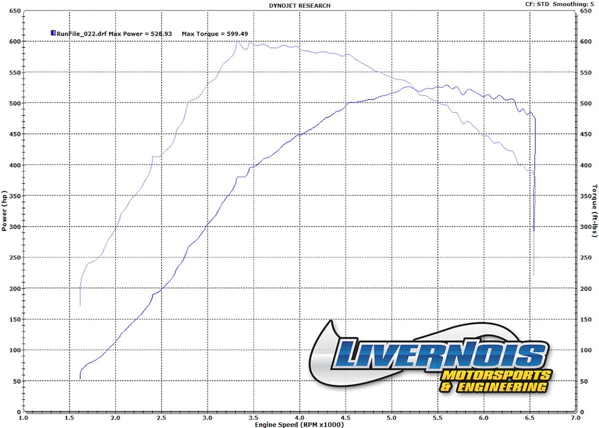 “This engine is built to handle the boost capable of those turbos,” says Mike Schropp, engine department supervisor at Livernois. “In this case the limiting factor is the fuel system.”