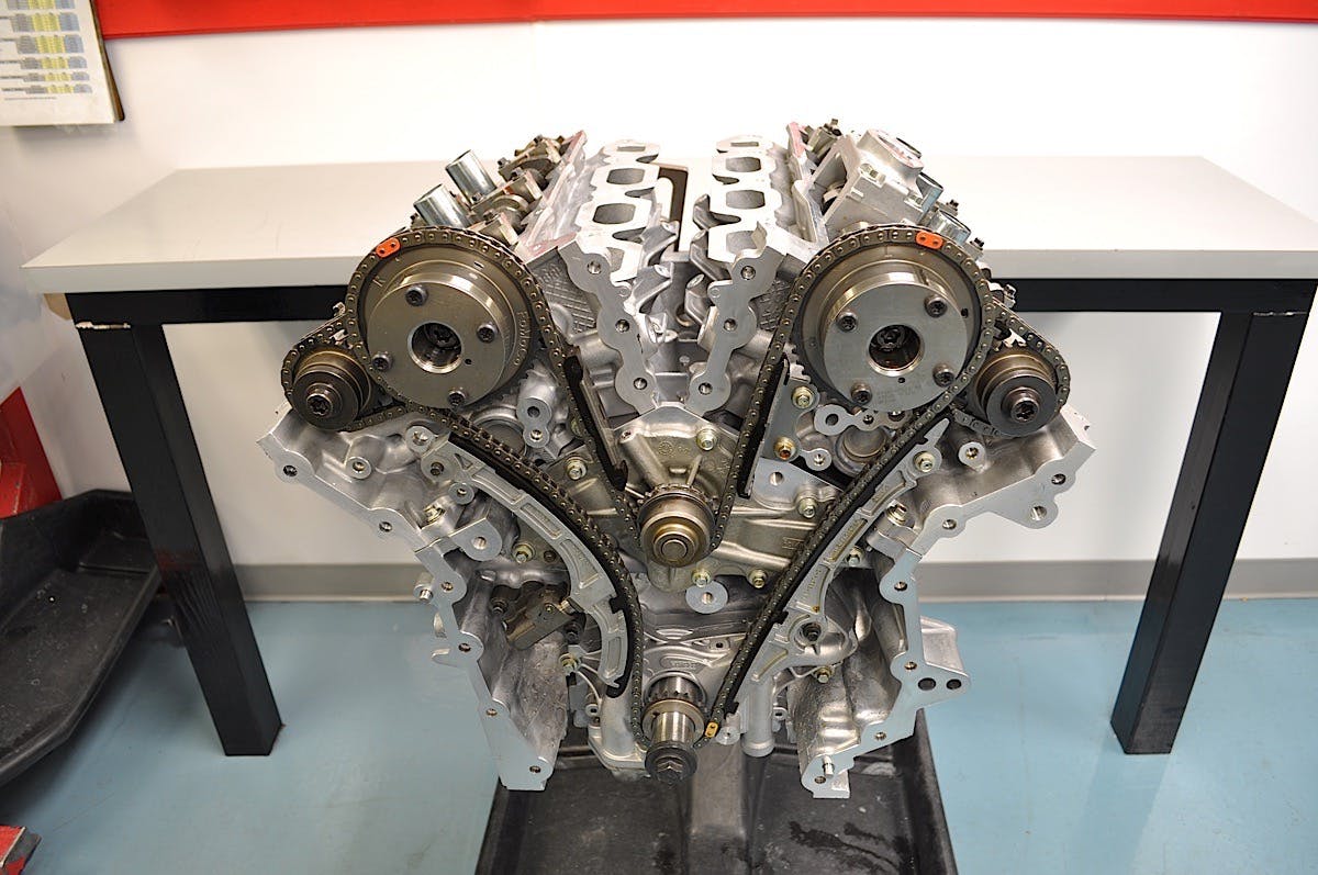 The factory cam chains and gears are retained, but Livernois modifies the oiling to ensure longer life and stiffens up the shear pins to strength the chain guides. The cam phasers and camshafts are also carry over from the base SHO engine.
