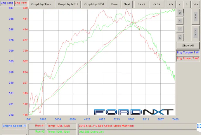 “When looking at the stock manifold it would appear to be a modified GT350 manifold, so we were not expecting huge gains as on previous years,” Matt said. “There are some gains in the upper-RPM range. We expect even more with a larger throttle body. For our base we used a stock, 60mm twin-blade. I believe with the larger throttle body the gains will justify the price tag.”
