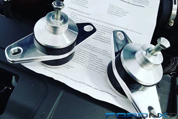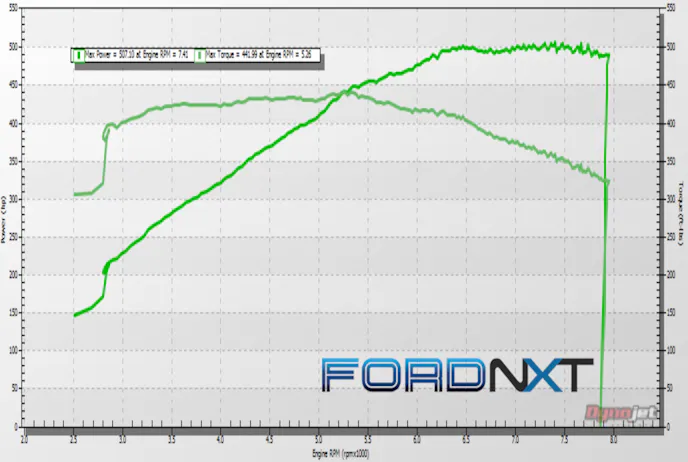 • UPR Products lowered engine mounts“Our first hurdle was the new throttle body electronics. It is a completely digital signal now with such tight tolerances. Once we got past that, it was time to start tuning. We were pleased with the gains we found under the curve and at the peaks. Even on E85 the stock fuel system keeps up with the added airflow the Cobra Jet intake moves,” Matt said.