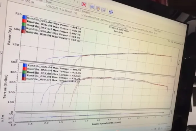 With no other changes, the team at Revolution Automotive swapped the stock intake for the 1320 Junkie Performance ported version. With no tuning adjustments whatsoever, the immediate outcome was impressive.“So, with no tuning adjustments, just throwing the ported manifold like I told you guys today, the baseline was 497, and that just made 504.95, almost 505 right there,” Michael exclaimed. This represented an instant gain of roughly eight horsepower at the wheels from a simple hardware change.