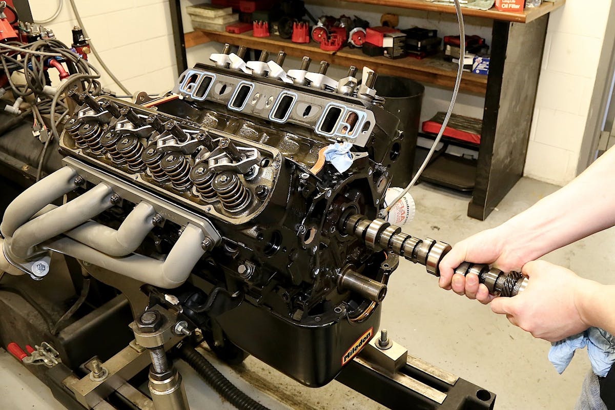 Teamed with Comp Cams lifters and .080-wall, 5/16-inch-diameter chromoly pushrods, the Nostalgia Plus cam was broken in using BR40 Driven Racing Oil. This 10W-40 oil has a proper zinc and phosphorus formula to protect flat-tappet camshafts. The oil is also suitable for a full day of dyno testing after break-in, which comprised 30 minutes on the dyno under various RPM and loads. The break-in setup also included a shop carb and ignition system—both were known factors to ensure a safe startup.