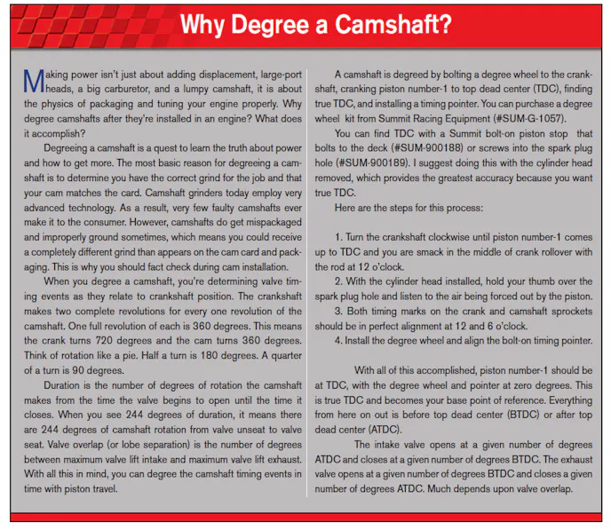 Camshaft and valvetrain components directly determine how reliably an engine performs throughout its service life. Before choosing a camshaft and valvetrain, you must first understand how they work and how you want your engine to perform. Are you building a driver where low- and midrange torque are important or are you building a high revving racing engine that makes peak torque at high RPM?