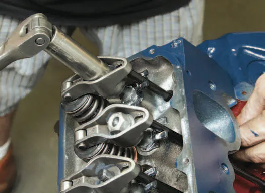 Turn the pushrod with your fingertips while tightening the rocker arm adjustment nut. When the pushrod becomes ever so slightly resistant to your fingertips, turn the adjustment nut 1/4 to 1/2 turn. Though Ford suggests 3/4-turn with some applications, this is too much. If you’re running poly locks, tighten the Allen screw lock. Do this in the engine’s firing order, one cylinder at a time.