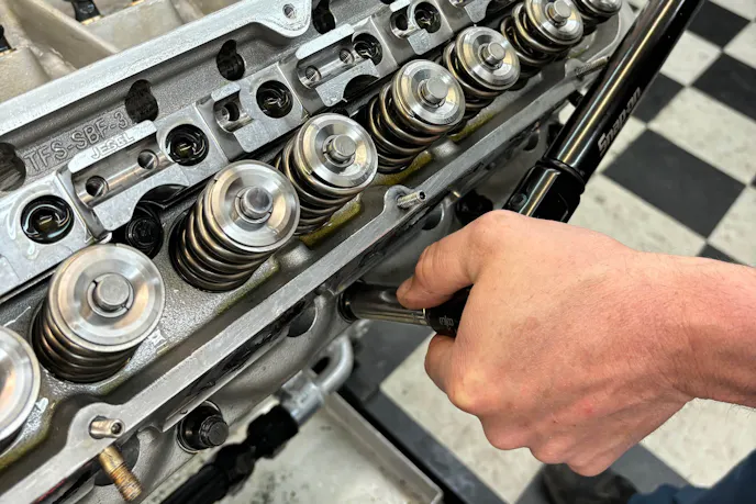 Bennett opted for P/N: 1254 springs from Performance Springs Inc. that have 350 pounds on the valve seat and 1,040 pounds of pressure when open. Manley Performance Titanium locks and retainers keep the springs seated and Xceldyne spring locators keep them over the valve where they should always be.