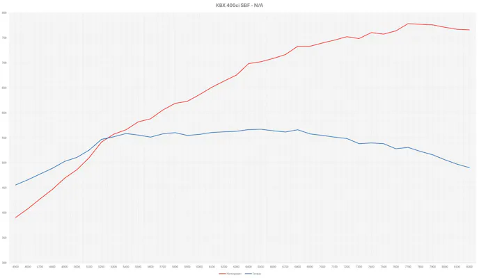 When the engine build was finished, Bennett Racing bolted-up the small-block Ford to its engine dyno for break-in and test runs in naturally aspirated form. The 400 cubic inches of Ford muscle churned out 778.4 horsepower at 7,700 rpm and peak torque of 567 lb-ft arrived at 6,500 rpm. The torque curve was broad with over 500 lb-ft available anywhere between 4,900 and 7,900 rpm.
