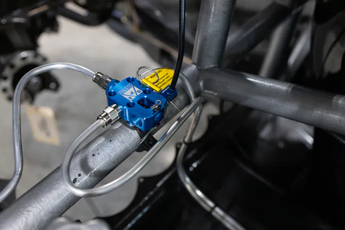 The staff began their work by taking apart the turbo system and ensuring that any and all gasketed joints were properly sealed up. To keep the driver safe, the Big 3 technicians installed a SPA Technique fire suppression system as well as fitted the parachute and safety harnesses from White Safety Equipment. Used for a variety of applications in the car, a CO2 system was also plumbed in.