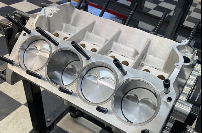 For our Ultra Street project, there are many engine and power adder combinations to choose from, but Bennett Racing steered us towards a 9.5-inch deck-height small-block Ford with a turbocharger. The foundation of this powerplant is a Carroll Shelby Engine Company cast aluminum block that Bennett has used in grudge and X275 applications good to high-3.9-second, 1/8-mile runs. The cylinders were hogged out to 4.125-inch, and the lifter bores were also enlarged to accommodate more substantial lifters.
