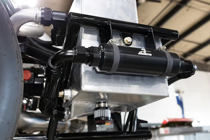 Aeromotive’s Brett Clow calculated the hardware we would need based on an estimated 1,800 to 2,200 horsepower figure and the choice of E85 fuel. To address those needs, he chose an Aeromotive 10.0 brushless gear pump and supported that with a complement of Aeromotive and Waterman Racing Components fuel filters and regulators.