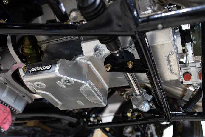 In addition to the fuel system, plumbing a racecar can also include the oiling system and that was the case with our Ultra Street build. While the Bennett Racing Engines small-block Ford is utilizing a wet-sump oiling system, we have opted to use a Peterson Fluid Systems external oil pump to lubricate the engine and turbo. The staff at Big 3 Racing connected the oil pump to the engine and its Moroso fabricated oil pan (P/N: 20529) with built-in provisions for just such an application.