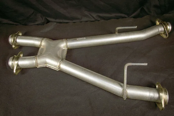 The BBK X-pipe matches the wide automatic headers, it is 2 1/2-inches with a x-shaped cross over to maximize flow and performance.