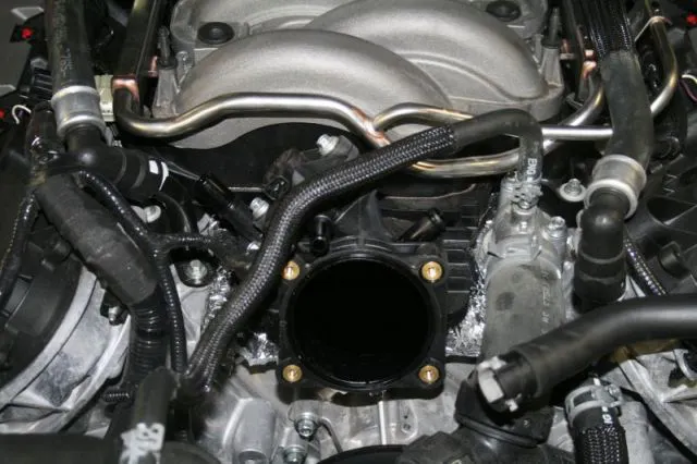 Buttoning everything up from here is pretty easy. Just reverse the removal steps. As mentioned, the change in position of the throttle body may cause issues with aftermarket CAI kits, as well as the original GT piece. It just takes a little patience and ingenuity to find the right adapter.