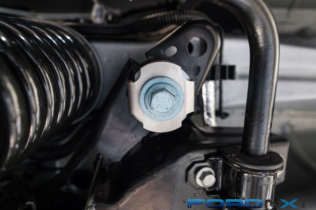“We address this vertical, lateral, fore, and aft deflection of the IRS subframe with our most popular S550 IRS mod, CB005, which reinforces and firms up the IRS subframe mounting to the chassis,” Kelly explained. “This kit also positively locates the subframe as the stock IRS assembly can be put into different positions on the front mounts causing misalignment issues. Ours does not allow this. Also it is worth noting that our CB005 adds a convenient jacking point.”