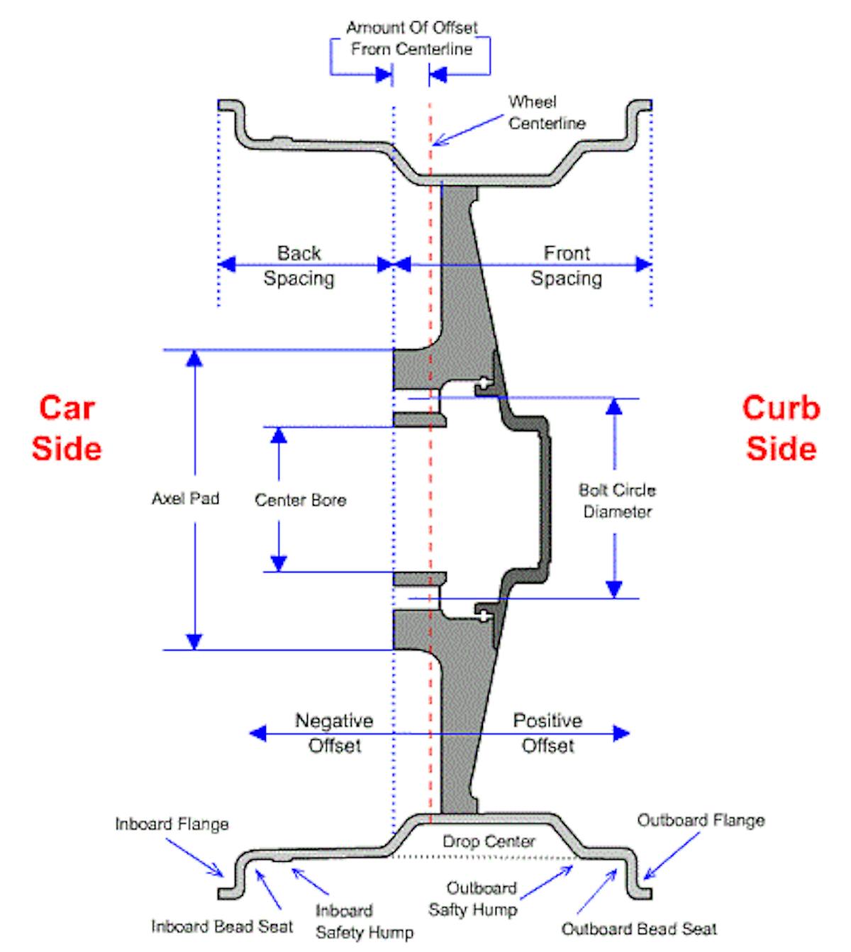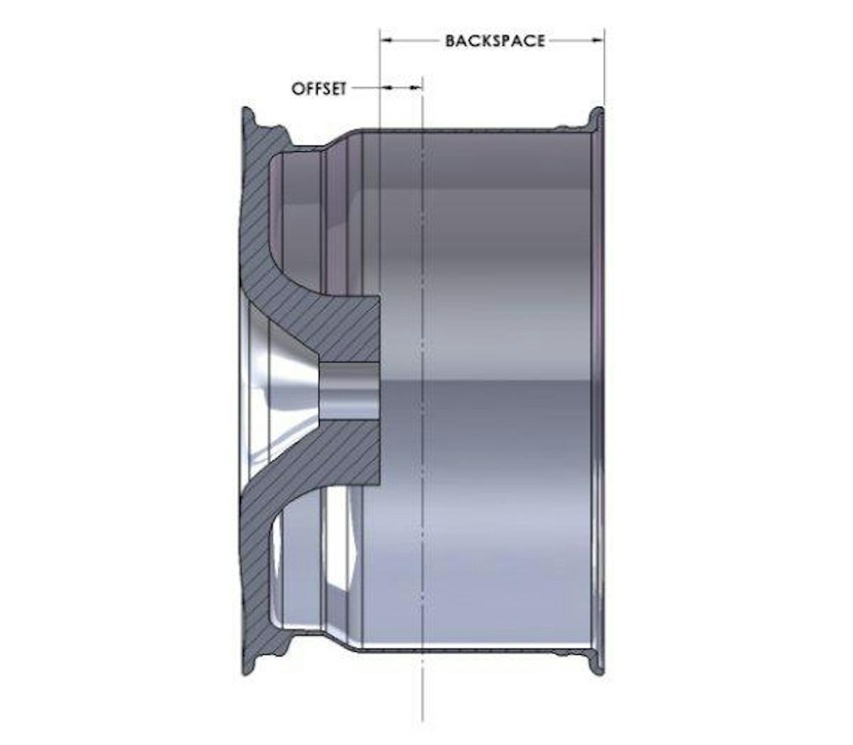 Before we move on, because backspacing is a commonly misunderstood attribute, let’s go over what it is. Backspacing is the measured distance from the inner bolting surface of the wheel to the outer edge of the inner side of the wheel. This is often and easily confused with wheel offset, which is defined as the distance from the exact center of the wheel to the inner and out edges of the wheel. These measurements are typically very closely related to one another.