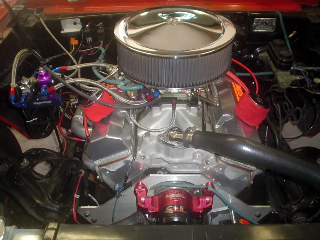 This 650 horsepower small block Chevy requires a large, low-restriction air filter to keep up with airflow demands.