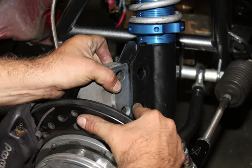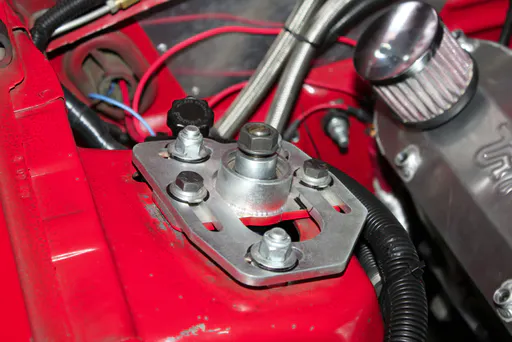Up top, we installed the caster/camber plates on top of the shock tower. This provides far more adjustment than the factory design.