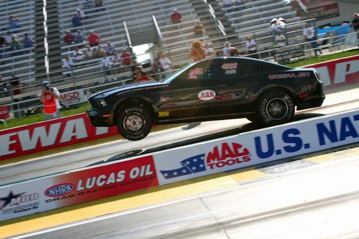 The Cobra Jet program came to light back in 2008, with the first cars rolling off the assembly line and virtually right into the winner’s circle in the hands of the Brent Hajek-owned, John Calvert-driven CJ at the 2009 NHRA Winternationals. Since then, the Cobra Jet has become the winningest late model in NHRA, including national event wins in 2009, 2010, 2011, and 2012, class wins at the 2011 U.S. Nationals, and a top ten finish with Bo Butner in Stock Eliminator in 2011. In addition, the Cobra Jet’s performance on-track had a big hand in Ford winning the 2011 NHRA Manufacturer’s Cup, as the national event win coupled up nicely with three runner-ups, four semi-final appearances, and 16 number-one-qualifier spots during the course of that season. Past versions of the Cobra Jet were outfitted with a 5.4-liter supercharged engine, but with the 5.0 returning to its rightful place between the fenders of the Mustang, the decision was made to outfit the factory race car with the current powerplant.