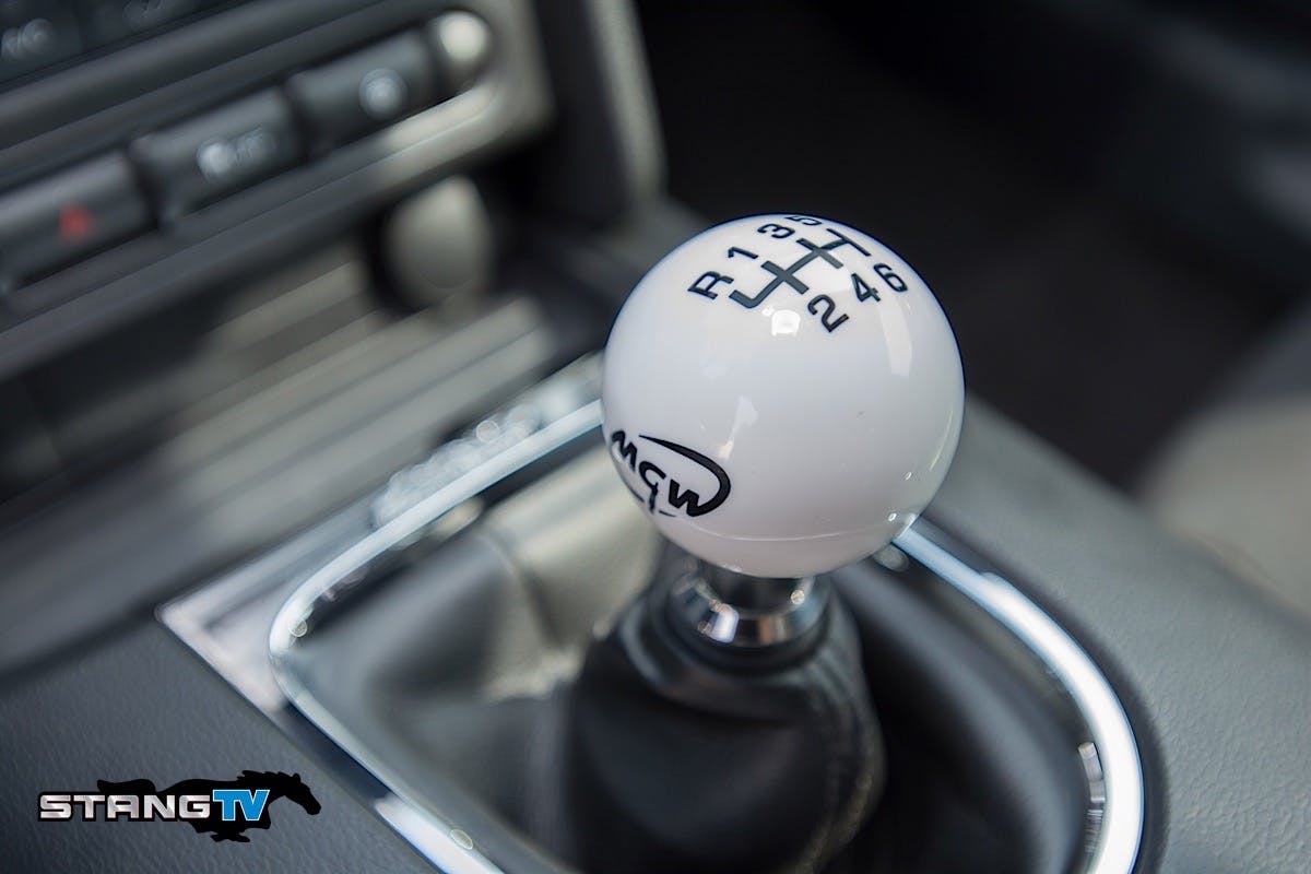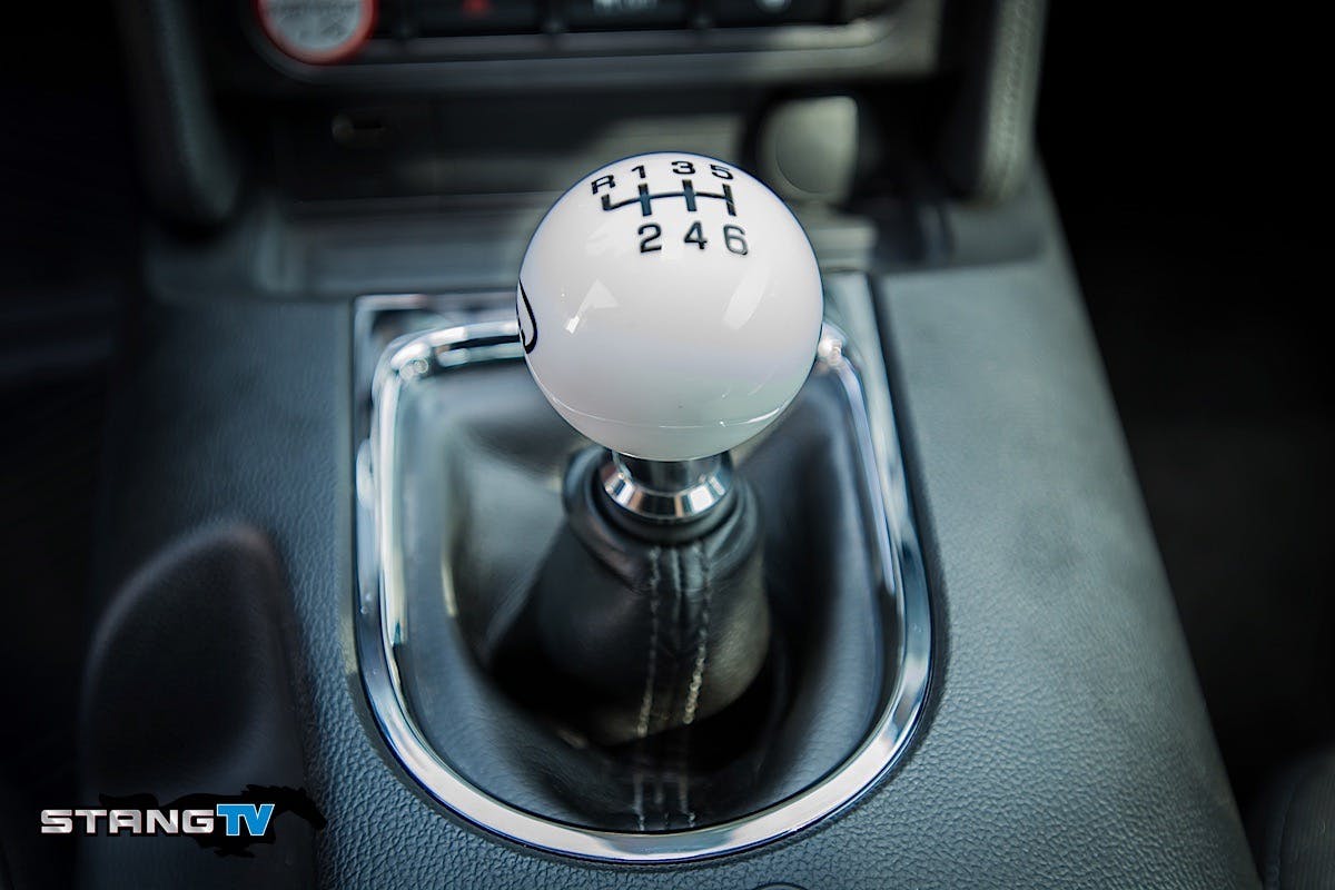 The stock shifter is adequate if you are the kind of person who views your car as an appliance. In our case, with just over 5,000 miles on the odometer, we already noticed wear in the bushings which resulted in play in the shifter. Our stock shifter is pictured here with a Roush Performance shift knob installed.