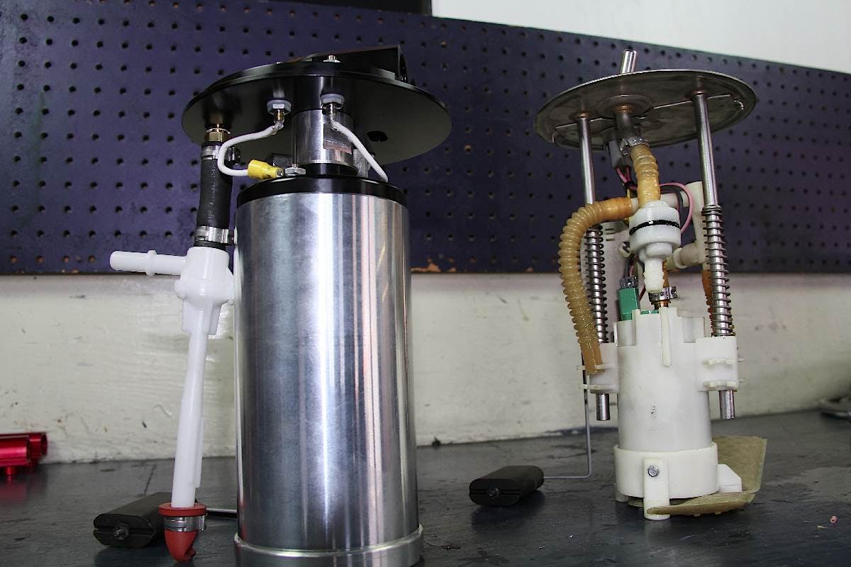 Since 2005 Mustangs have a “saddle” style fuel tank, which straddles the driveshaft, Aeromotive actually repackaged the A1000 and Eliminator pumps with a custom hat to make them fit this application. Everything to use the factory siphon system is available as well to ensure the pump draws fuel from both sides of the tank.