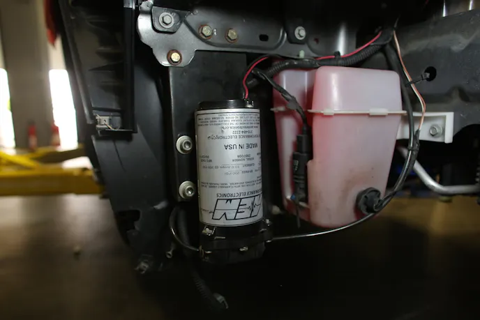 While the controller is the brains of AEM’s water/methanol system the heavy-duty pump is the heart of it. This pump is actually overkill for the system, capable of providing a far greater amount of fluid flow than what is needed.