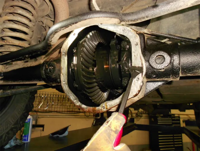 Now you can clean the differential and remove the gasket material from rearend housing. Before bolting up the new cover, apply a thin bead of RTV gasket maker insider the bolt holes.