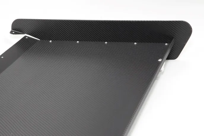 The spoilers are built from .050-inch-thick aluminum for the flat section and the spill plates, although the spill plates are doubled at the top for strength. The wickerbill at the rear of the flat section is also folded-over to provide strength in this critical area.