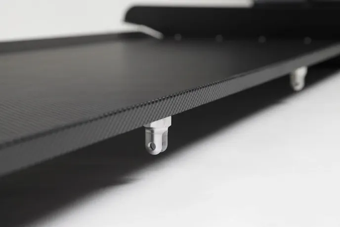 Once the spoiler is mocked up, it’s time to install our strut rod assemblies. The aluminum brackets supplied in the kit get bolted into the pre-drilled holes at the back edge of the spoiler. The jam nuts and clevises are then threaded onto the supplied aluminum threaded rods, and attached to the underside of the spoiler with the quick pins.