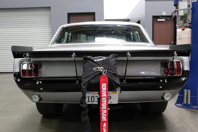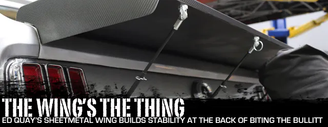 With the idea of improving downtrack stability on the Bullitt, we turned to the experts at Ed Quay Race Cars to determine the correct direction for our project’s next step, and they suggested one of their fabricated aluminum rear wings [PN 700-3070] and Strut Rod Kits to tune up the airflow around the backside of the Bullitt.