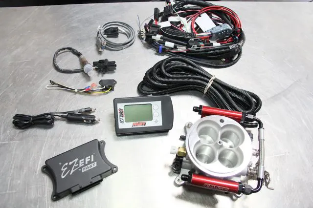 - Complete system includes mini ECU, wide-band O2 sensor, clearly labeled wiring harness, injectors, fuel pump kit and throttle body