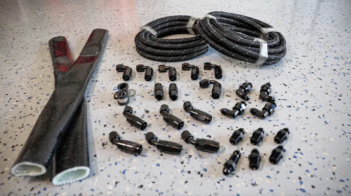 Here’s the quick breakdown: Cut the braided hose cleanly with a hacksaw or cutoff wheel, push the female AN bell fitting onto the hose while twisting, and then thread in the male fitting until snug. Once you get the hang of it, it’s only a few-minute job per line and can even be performed on the vehicle once you have the process down pat.