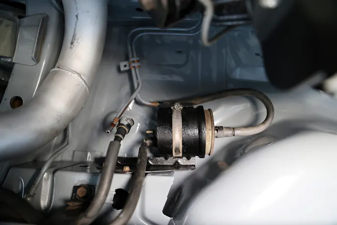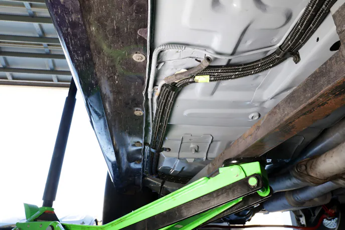 Now that the tank was back in, I plumbed the new fuel lines along the body. Removing the stock fuel lines was relatively easy being that most are bolted in, except for one bracket that required drilling out a rivet. Once out, I figured out the new line routing. For guidance, Holley provided a route with bracket mount locations along the transmission tunnel in the directions, but I opted to run the lines along the return fuel line path instead of the transmission tunnel, which felt like a better setup for my build.
