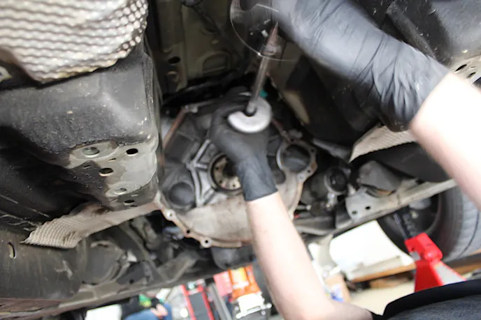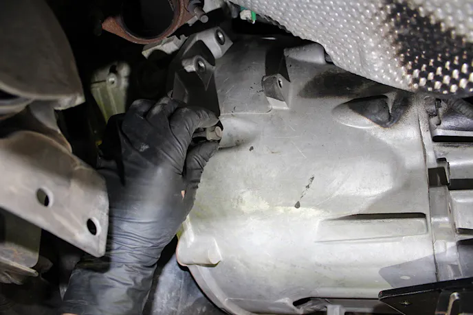 Next up was to remove the starter and drop the transmission so that we could remove the worn-out factory clutch assembly.