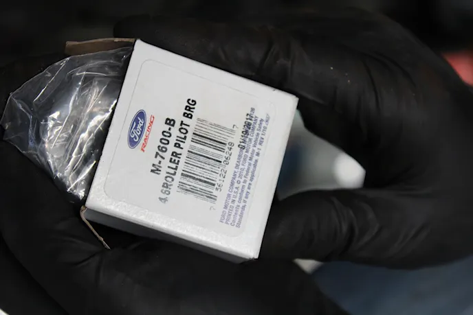 While we were replacing our clutch assembly, we decided to install a few additional components which were not included from SPEC (although they were recommended, as they are wear items). We decided to purchase a LUK clutch slave cylinder (PN LMC485) from RockAuto to replace our worn-out stocker. We also purchased a brand new pilot bearing from Ford Performance Parts (PN M-7600-B), as well as a McLeod Racing stainless steel hydraulic clutch line (PN 139251) from AmericanMuscle.