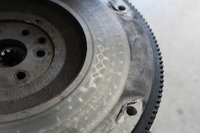 As you can see, the clutch discs still had a hint of life left in them. However, the hotspots on the factory flywheel tell a different story.