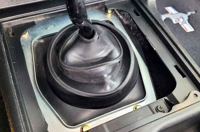 Next came the Center Console Armrest Pad Kit (P/N LRS-06024N-K; $42.99), which restored the proper latch and comfort missing for years. Up top, a new Leather Shift Boot and Bezel Kit (P/N LRS-7277JK; $49.99) framed the shifter with clean black leather, capped by a Hurst White Classic Shift Knob (P/N HUR-1630014; $62.15) that gives every gear change a throwback muscle car feel.