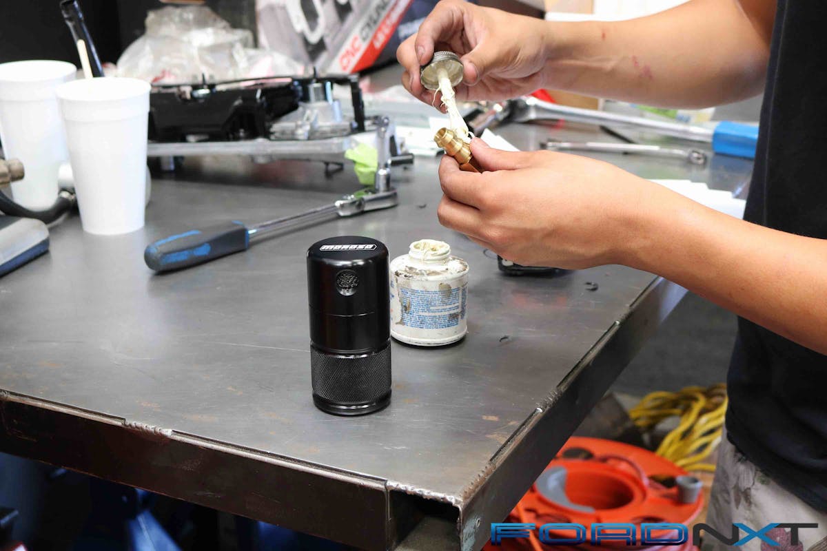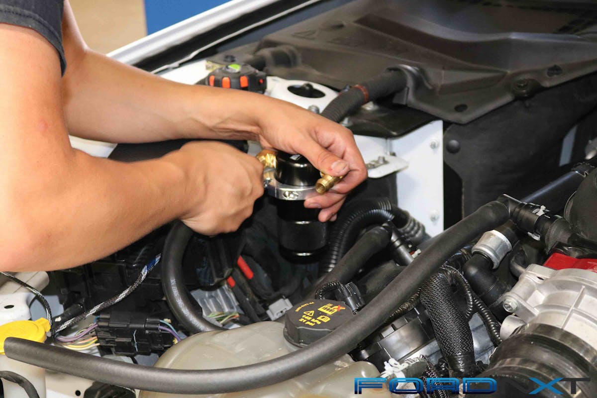 • Stainless mounting bracketThe Moroso catch can come with easy-to-follow instructions, and we wasted no time preparing its hoses for installation. Once the old lines were removed, it was time to remove OEM 90-degree fittings and install them on the Moroso hoses.