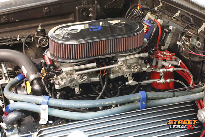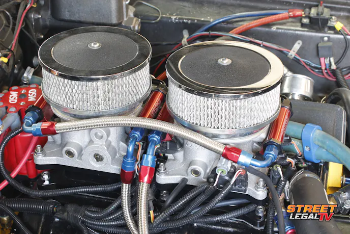 Having a dual quad doesn’t seem like it would be an issue when it comes an air cleaner, because there are plenty of dual quad air cleaners on the market. But what we ran into was that the minimum center-to-center measurement was more than the 7.5 inches we have on our intake. When we found one that had a shorter center-to-center minimum, it wasn’t adjustable and we had to cut the base in half and add an inch to it, making a very ill-fitting air cleaner that didn’t seal properly, and it didn’t look very good, either.