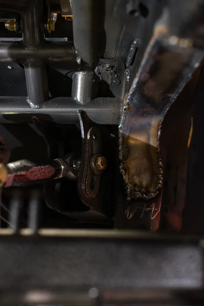 Once this round of measurements was complete, the boxes could be tacked into place before a final round of measurements ensued. Finally, a MIG welder was used to weld the perimeter of the boxes. They are reinforced at all weld points to ensure that the boxes essentially become one with the chassis.